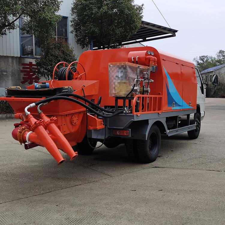 设备从喷浆前的预备到实施喷浆,四驱液压帮力转向,高速为每小时40公里,运转稳,操做开关按钮集成正在一块面板上,